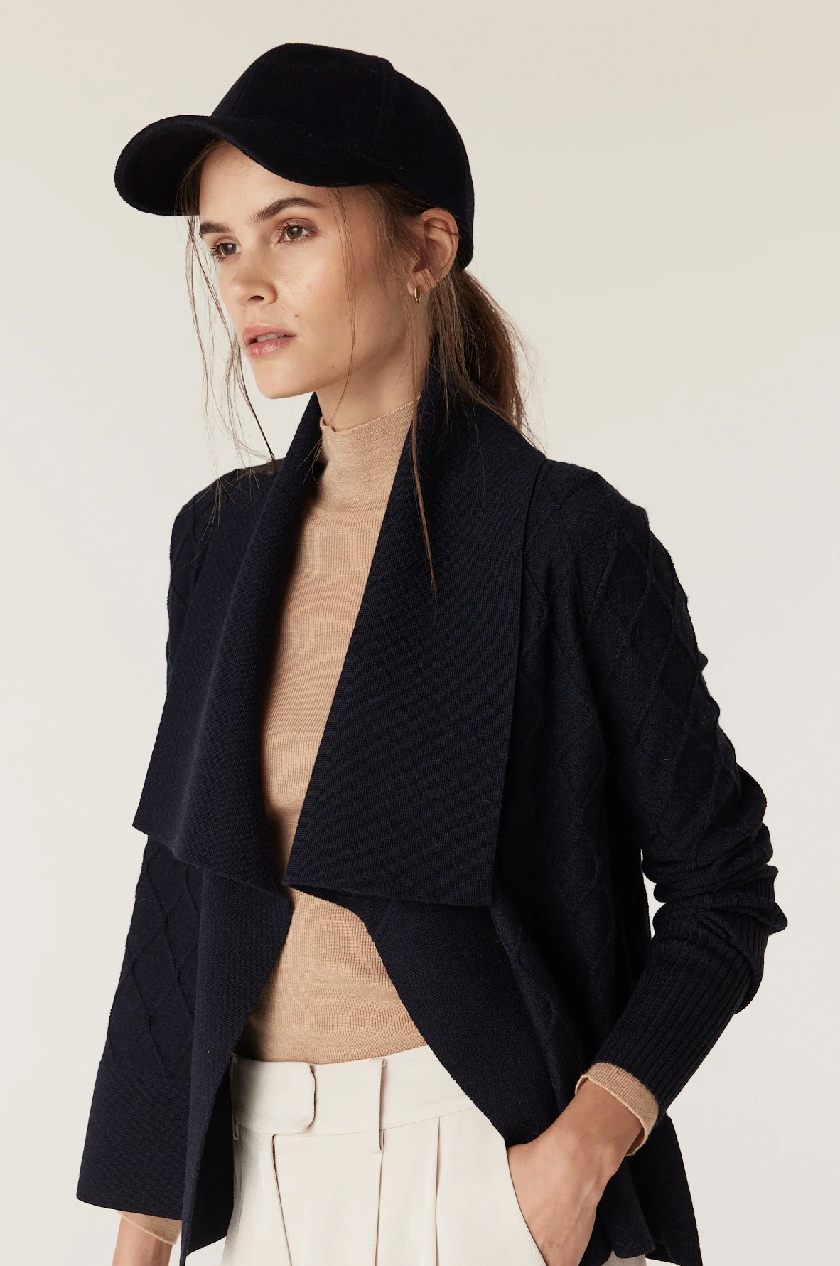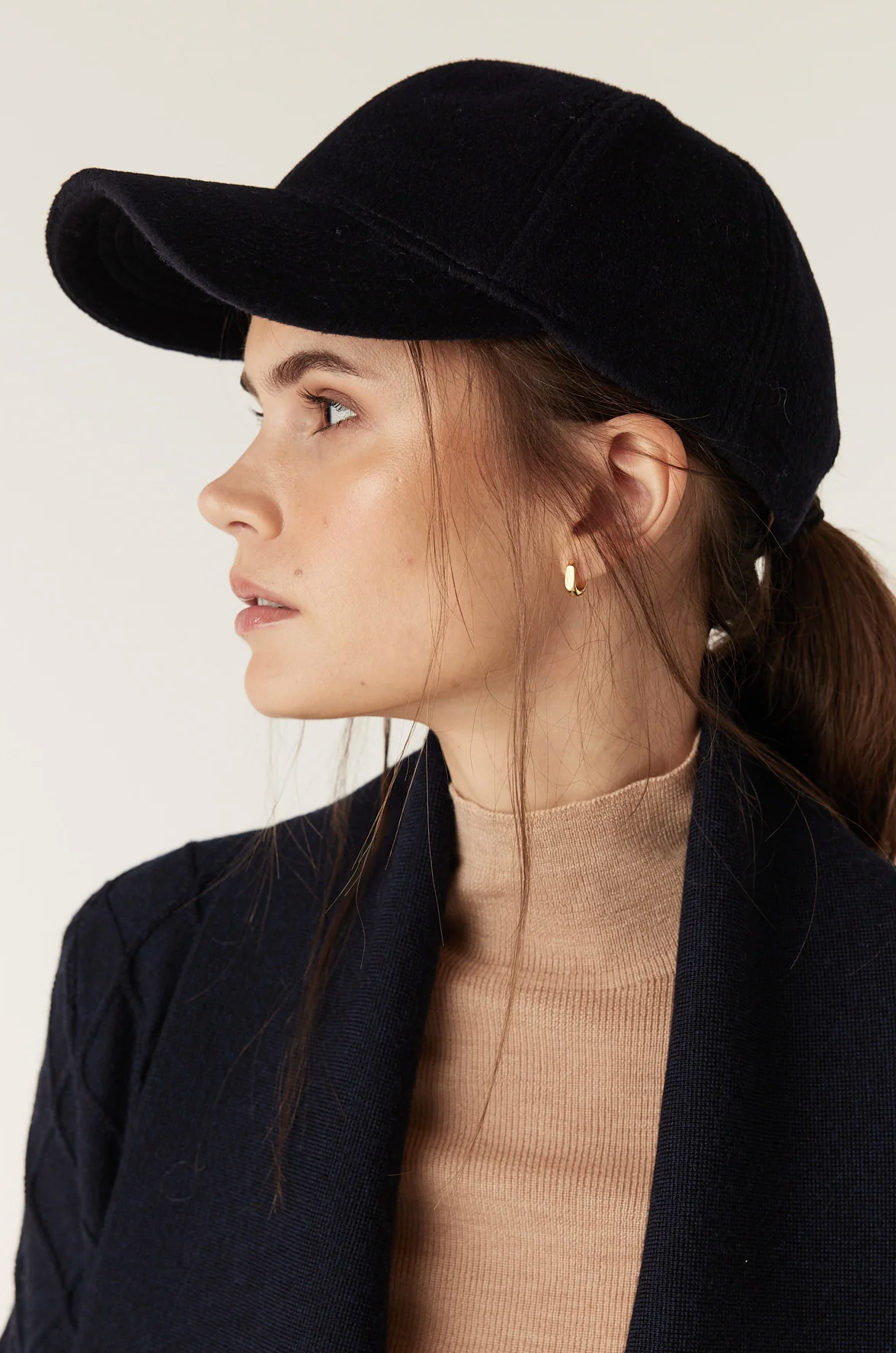 This classic 6-panel cap is made from a premium wool and cashmere blend. Features a 7cm peak and an adjustable back strap with slider hardware.